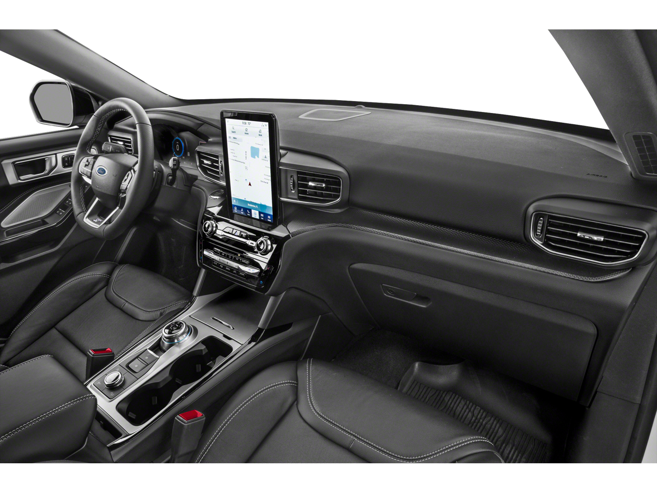 EQUIPMENT GROUP 401A ST High Package, ambient lighting, Memory Drivers Seat, Power Tilt/Telescoping Steering Column, Front Rain-Sensing Wipers, Reverse Brake Assist, 360-Degree Camera w/Split View, Wireless Charging Pad, 110V/150W AC Power Outlet, Replaces the powerpoint port on the rear side of the center floor console, Radio: B&O Sound System by Bang & Olufsen, 12 speakers, subwoofer and HD Radio, Sideview Mirrors w/Gloss Black Caps, power-folding w/Autofold, power and heated glass, LED turn signal indicators, ST projection lamps, drivers side auto-dimming and driver and passenger side memory, Ford Co-Pilot360 Assist+, Speed Sign Recognition, Voice-Activated Touchscreen Navigation System, pinch-to-zoom capability, SiriusXM Traffic and Travel Link, Note: SiriusXM Traffic and Travel Link, TWIN PANEL MOONROOF remote control front windows (opens front windows from outside of the vehicle via the key fob), TRANSMISSION: 10-SPEED AUTOMATIC (STD).